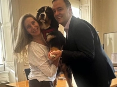 El vocero presidencial Manuel Adorni y la secretaria General de la Presidencia, Karina Milei, presentaron hoy a Thor, que será "el perro de la Casa Rosada". Se trata de un boyero de Berna que cotiza en un millón de pesos.