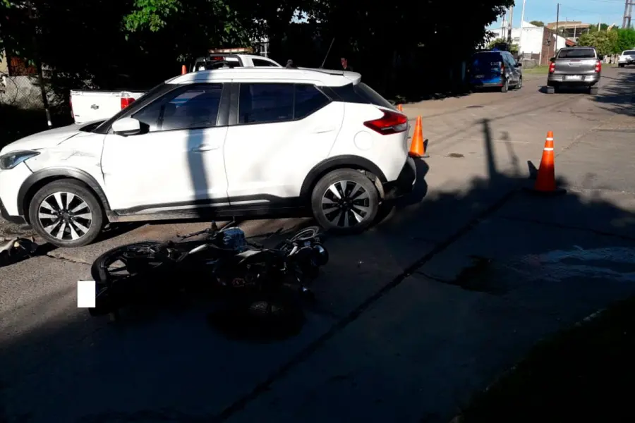 Un choque entre un auto y una moto se produjo, alrededor de las 18:00 de este miércoles, en la intersección de calles Arnoldo Jannsen y Misiones, en el Barrio San José de Crespo generando que dos personas tuvieran que ser hospitalizadas.