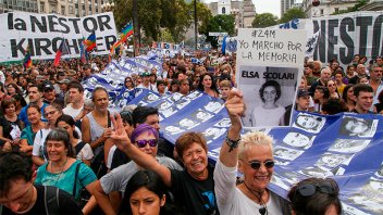 "Seguiremos luchando porque las madres hemos recibido las voces de nuestros hijos e hijas que nos dicen 'mamá seguí, nos bajes los brazos", dijo desde el escenario la referente de Madres de Plaza de Mayo Línea Fundadora, Nora Cortiñas.
