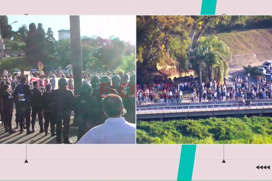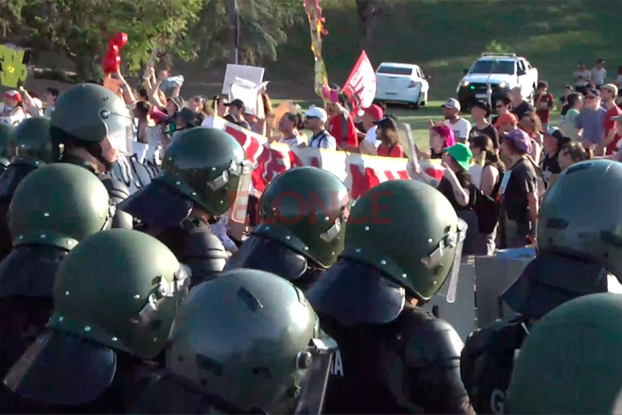 La movilización se desarrolló sobre avenida Laurencena y calle Acuerdo de San Nicolás, puntos donde se montó un cordón policial para separar a los dos grupos. De un lado, se encontraban militantes y organizaciones sociales que expresaban su rechazo a las políticas del Gobierno nacional; del otro, seguidores del mandatario que lo recibieron con aplausos y banderas celestes y blancas.