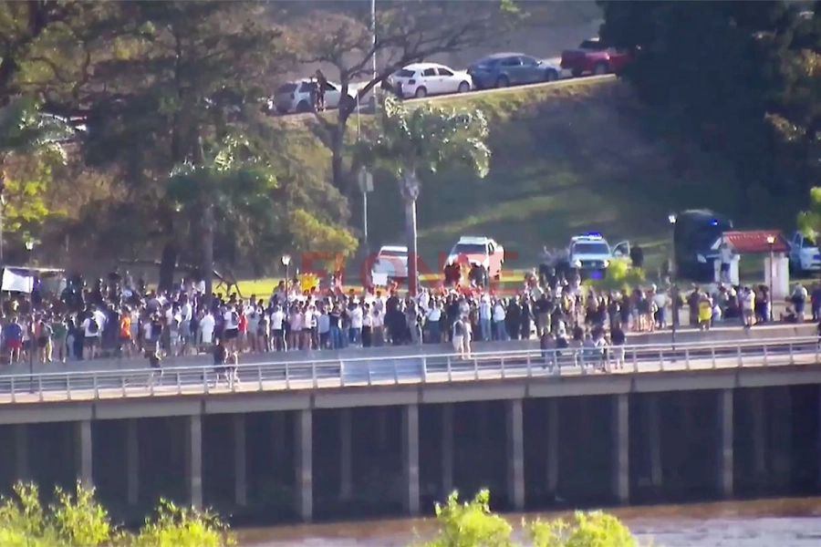 Un nutrido grupo de manifestantes llegó hasta la costanera baja para protestar ante la visita de Milei en Paraná; mientras gran cantidad de seguidores libertarios se agruparon para vitorear al presidente. Se implementó un cordón policial para separar a cada grupo.