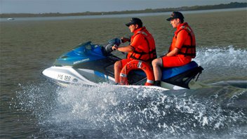 Dos hombres y una embarazada iban en una moto de agua. Una mala maniobra, el fuerte viento y el oleaje, los llevó a perder el control y caer al río. No podían regresar a la costa por sus propios medios y fueron auxiliados por Prefectura.