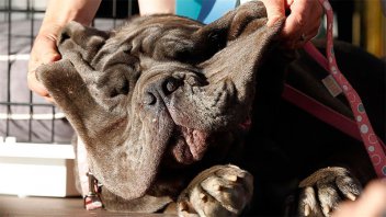 El mastín napolitano Martha, con sus enormes cachetes, sus ojos ensangrentados y su pelo pardusco, fue "distinguida" como el perro más feo del mundo en la localidad californiana de Petaluma.