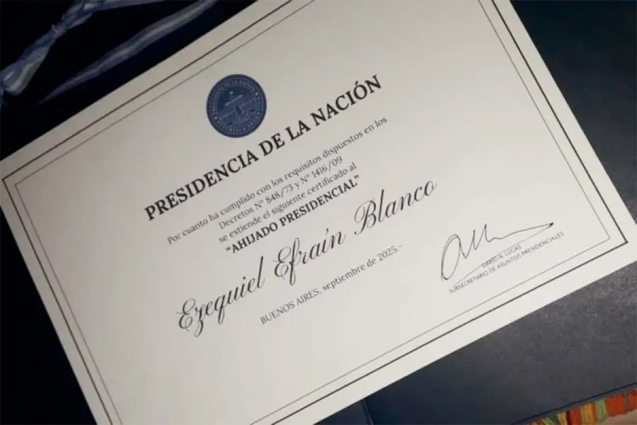 Ezequiel Efraín Blanco, nació en Concordia hace 54 años y contó que inició el trámite en 2024 para ser “ahijado del presidente Javier Milei” y acceder al beneficio educativo vigente.