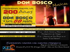 Asimismo, el viernes 20 a las 21 horas en el Teatro Municipal 3 de Febrero, tendrá lugar el Musical de Don Bosco en conmemoración por los 200 años del natalicio del santo fundador de la Congregación Salesiana.