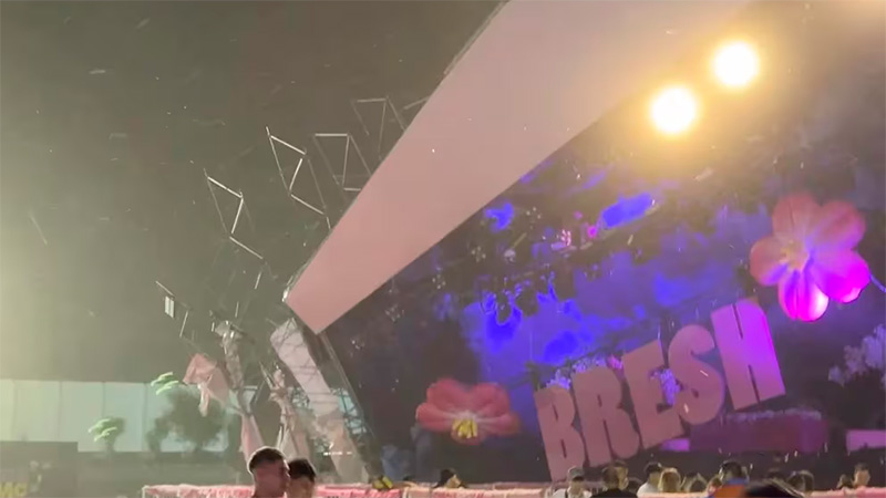 Diferentes asistentes a la Bresh publicaron en redes sociales varios videos del momento en el que el escenario se cayó por los fuertes vientos mientras eran evacuados.