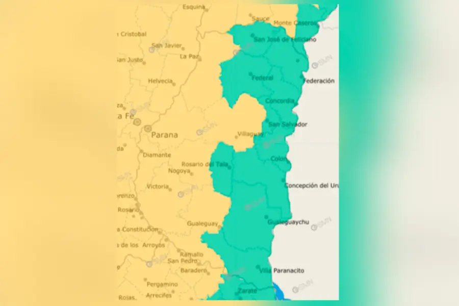 El Servicio Meteorológico Nacional (SMN) emitió alerta amarilla para los departamentos de Diamante, La Paz, Nogoyá, Paraná, Villaguay, Gualeguay y Victoria. Las tormentas previstas podrían estar acompañadas de lluvias abundantes en cortos períodos, frecuente actividad eléctrica, caída de granizo y ráfagas de hasta 70 km/h. Los acumulados de precipitación se estiman entre 30 y 50 mm, valores que podrían superarse de forma puntual en algunas localidades.
