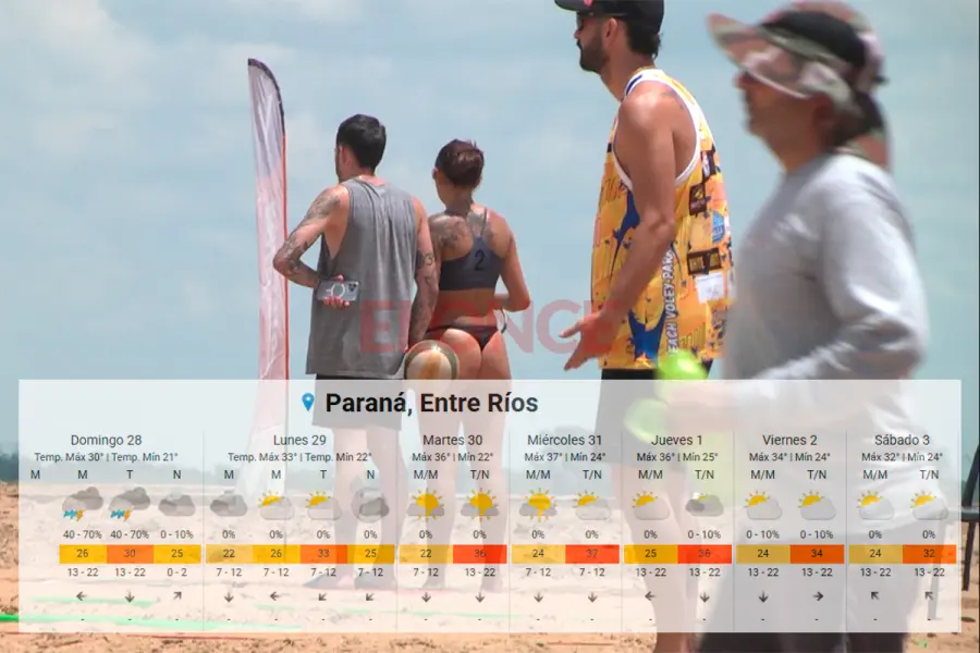 El verano arrancó con todo y este último fin de semana de diciembre se volvió un horno en el territorio entrerriano y la región. El Servicio Meteorológico Nacional emitió una alerta amarilla por calor extremo para este domingo que abarca a los departamentos del sur provincial (Victoria, Gualeguay, Gualeguaychú, Ibicuy, Uruguay, Tala y Colón) y se extiende también a otras siete provincias. De acuerdo a los datos del SMN, se pronostica un pico de 37ºC en la víspera de Año Nuevo.