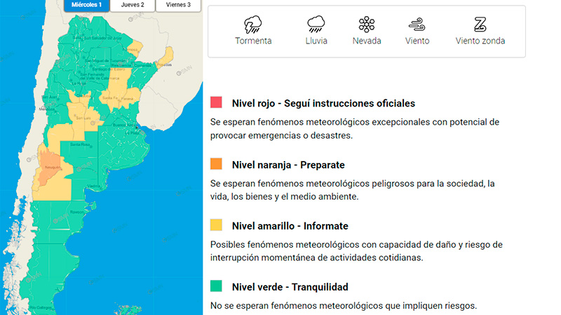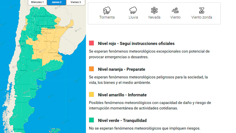 El Servicio Meteorológico Nacional emitió esta madrugada dos alertas que incluyen a Entre Ríos.