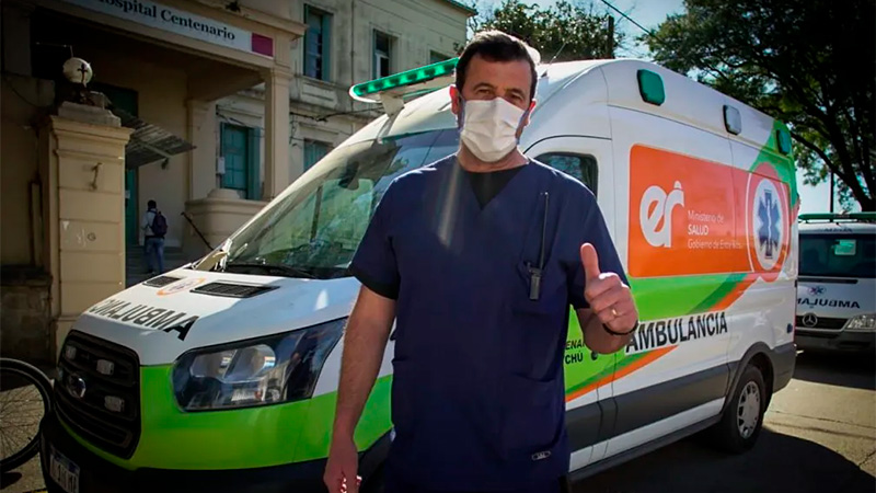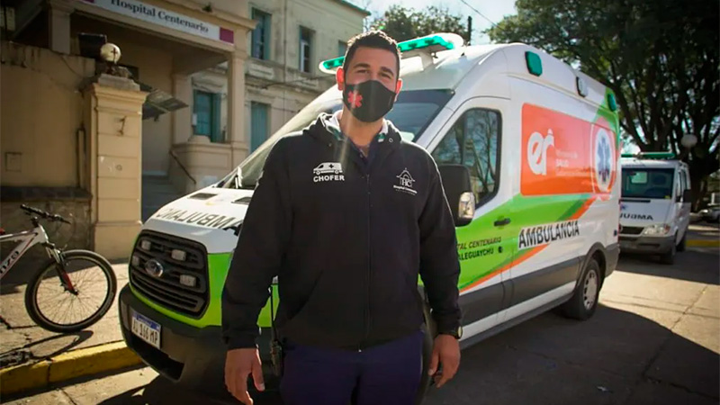 Nicolás es el más chico del equipo, apenas tiene 25 años, pero ya suma seis como empleado de la institución de salud pública, una de las cuatro más importante de Entre Ríos. "Entré como seguridad, pero hoy estoy en el servicio de traslado de emergencia y covid", se presenta.