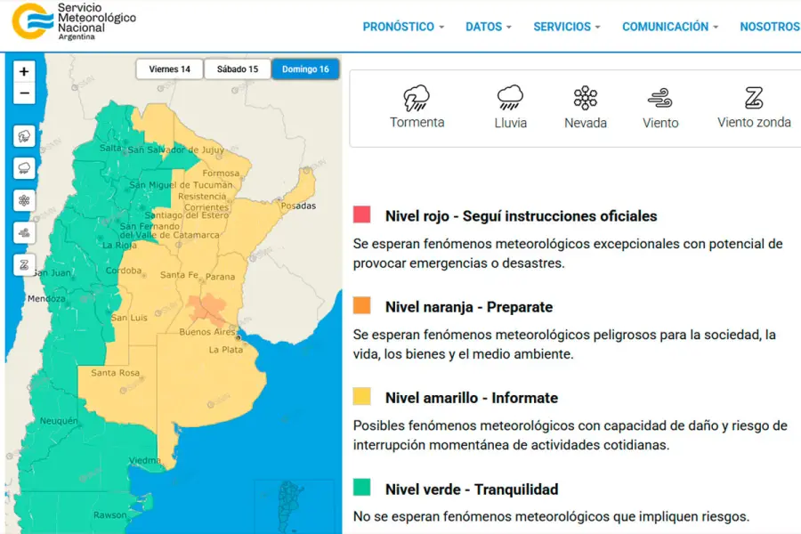 En tanto, para el domingo a la madrugada, rige una alerta naranja para los departamentos entrerrianos de Gualeguay y Victoria. Mientras que, en territorio bonaerense, incluye a San Nicolás, Baradero, San Pedro y Ramallo. En tanto, también abarca en Santa Fe a Villa Constitución, Rosario y San Lorenzo.