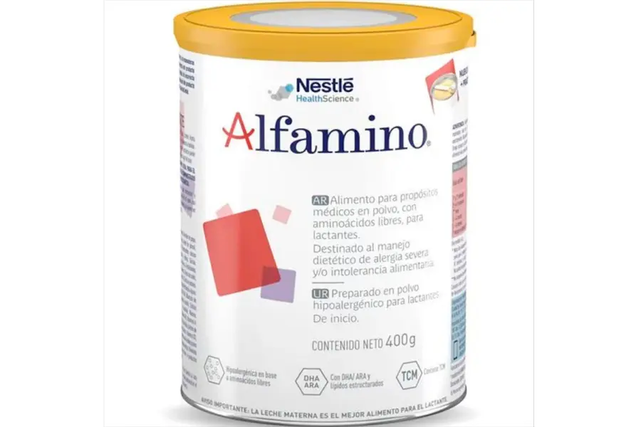 En cuanto al producto importado, el retiro alcanzó al alimento para propósitos médicos específicos en polvo para lactantes Nestlé Alfamino, de origen suizo, presentación de 400 gramos, identificado con RNE N° 00-014591 y RNPA N° 079-00-022965. El lote afectado fue el 51690017Y1, con vencimiento en junio de 2027.