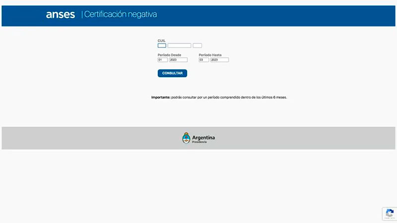Completá el formulario con tu número de CUIT/CUIL y el período por el que pedís la certificación (último mes).