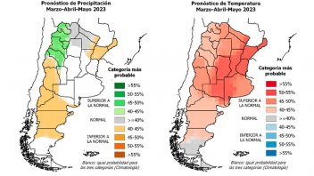 Mientras tanto, Entre Ríos, Buenos Aires, Córdoba, la mayor parte de Santa Fe, junto a sectores de otras provincias aparecen en blanco. Esta zona “corresponde a Climatología e indica que no hay una categoría con mayor probabilidad de ocurrencia. En estos casos se debe considerar la información estadística del trimestre”, explicaron desde el Servicio Meteorológico Nacional.
