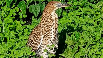 Se trata de un hocó colorado, también conocido como avetigre colorada. Habita en humedales y pajonales del norte argentino. Aunque se trata de un ave común, no es normal verla en una zona transitada.