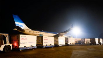 Además, esta madrugada a las 5.07, en un vuelo de la empresa LATAM Cargo Colombia, aterrizó en Ezeiza un cargamento con 733.000 sueros de AstraZeneca y Oxford.