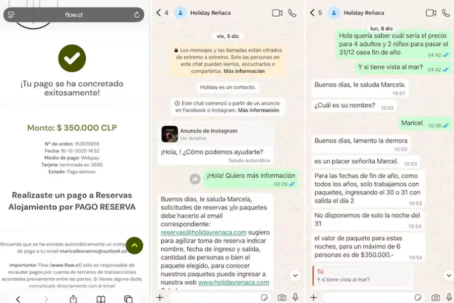 Una estafa digital de gran escala afectó a más de 200 familias argentinas que habían reservado alojamientos para la temporada de verano en Reñaca, Chile. El fraude se concretó mediante una supuesta empresa denominada Holiday Reñaca, que contaba con página web propia, correos corporativos, WhatsApp Business verificado y perfiles activos en redes sociales, lo que generó una fuerte apariencia de legitimidad.