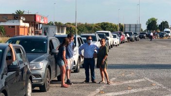 La situación es preocupante. Varias horas de espera y largas filas de autos desde el óvalo de Gendarmería hasta el área Integrada Binacional sobre el Puente San Martín al rayo del sol son la postal de lado argentino. Algunos llegaron sobre las 20 horas cuando la frontera estaba cerrada por Argentina y deben permanecer en Fray Bentos hasta las 8 de la mañana.