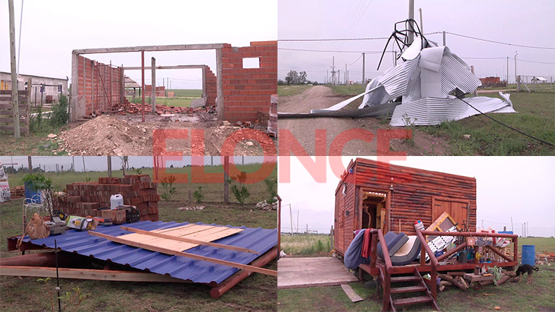 Al menos cinco viviendas de un loteo llamado Loma Hermosa 2 en Aldea Salto se derrumbaron como consecuencia del temporal de lluvia y viento que se registró durante la noche del domingo y madrugada de lunes. Un techo de 80m² de una vivienda, que hacía 20 días lo habían colocado; fue arrancado y arrastrado a unos 300 metros.