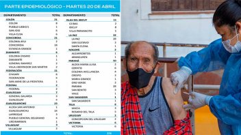 El área de Vigilancia Epidemiológica de Entre Ríos, confirmó que este jueves, se registraron 206 nuevos casos de coronavirus. De ese modo, son 57.675 los positivos confirmados en la provincia. Según el reporte del Ministerio de Salud , 16 departamentos sumaron positivos este martes.