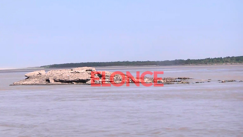 <b>El documento histórico registrado por Elonce TV da cuenta de la magnitud de la bajante del río Paraná y de la importante superficie de la Piedra Mora</b> que asoma sobre el agua del "pariente de mar".