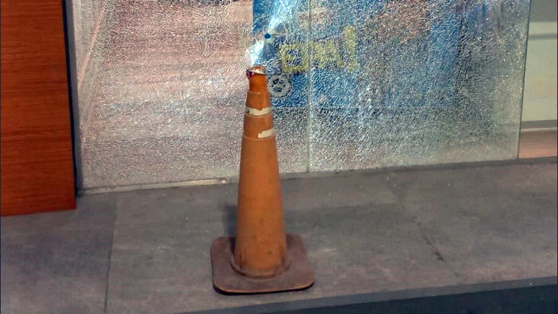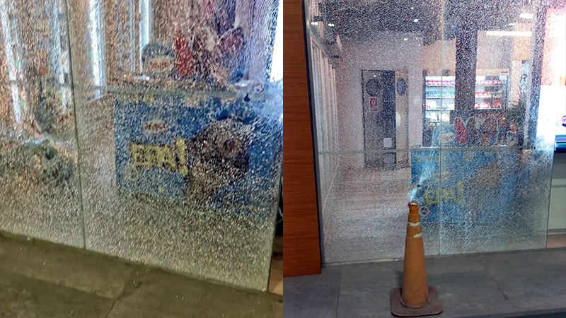 Algunos de los impactos dieron en el vidrio del shop de la estación de servicios, que se hizo añicos.