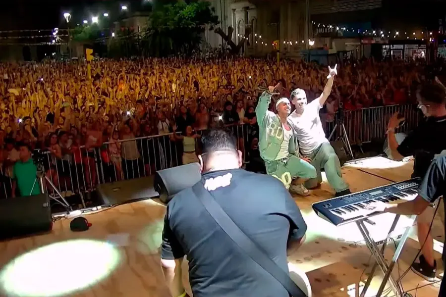 El esperado dúo Roze subió al escenario a las 00.20 de este sábado 20 de diciembre para coronar una jornada cargada de música y celebración. Con un repertorio pensado para el baile y el canto colectivo, el show se extendió hasta pasadas las 01.30 de la madrugada, marcando un cierre estelar para una nueva edición del Paseo Viví 25 de Mayo.