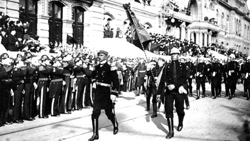 Para entonces, en el país el clima social estaba enrarecido. "Una multiplicidad de factores convergían y hacían sumamente inestable la situación política, social y económica de la Argentina. El mandato de Victorino de la Plaza llegaba a su fin; el 2 de abril de ese año, Hipólito Yrigoyen había sido elegido como presidente de la Nación, gracias a la entrada en vigor de la llamada Ley Sáenz Peña ?escribió María Teresa Fuster en su investigación El Centenario de la Independencia?. El 9 de julio de 1916, la ciudad amaneció con el resonar de campanas de las iglesias porteñas. Tras el Tedeum en la catedral metropolitana, a las 13 comenzó el desfile militar, que tuvo como corolario el atentado contra el presidente, que afortunadamente se frustró".