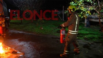 Bomberos Voluntarios dieron instrucciones sobre el uso correcto del matafuego, explicaron los componentes de un extintor y su manejo en diferentes tipos de fuego a Elonce.