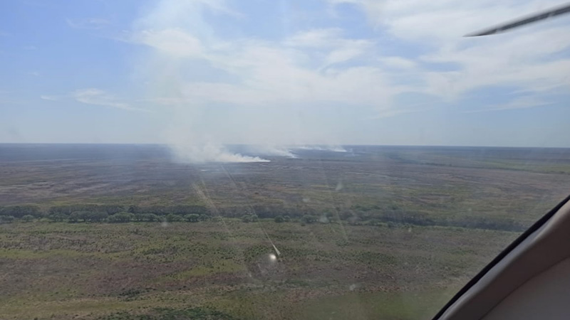 Durante este viernes continuaron las tareas para el combate y control de incendios en Islas del Departamento Victoria, desde el Comando de Operaciones conformado en el Aeroclub de Alvear. Participan brigadistas de ambas provincias, asistidos por medios aéreos del Plan de Manejo del Fuego.