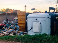 Un camión cargado con 27.000 kilos de papas volcó este miércoles a la madrugada en Avellaneda y Circunvalación, en la zona sur de Rosario. La versión preliminar de lo sucedido indicaba que el vehículo se habría quedado sin frenos y el conductor perdió el dominio del vehículo.