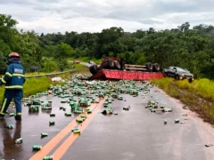 Por otro lado, quienes pasaban por el lugar del accidente aprovecharon para llevarse parte de la carga de cervezas que quedó desparramada sobre el asfalto. (Misiones online)