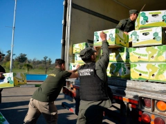 Desde el camión que llevaba la fruta y la droga, hicieron el traspaso a una camioneta. Cuatro personas fueron detenidas por Gendarmería.