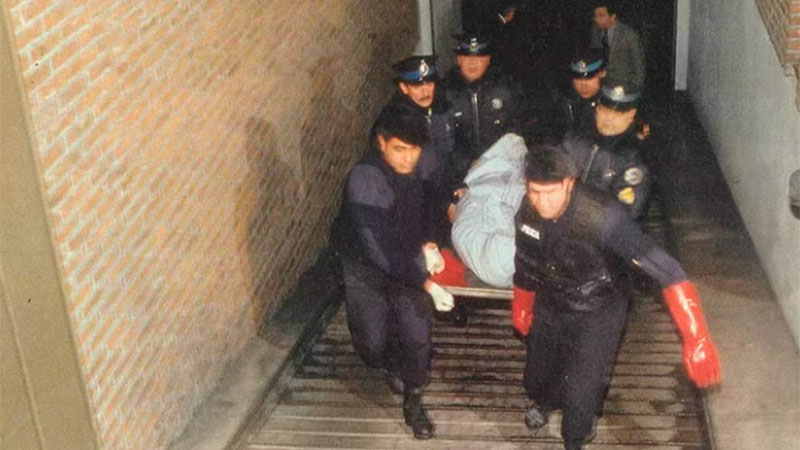 Al abrir la puerta del departamento, Diana lo llamó un par de veces. Nadie respondió. Corrió a la habitación de Favaloro. No estaba allí. Fue su hermano quien advirtió la luz en el vano de la puerta del baño. Salieron al palier. El padre de la chica que oyó el ruido mientras se estaba bañando oyó unos gritos: “¡Ayúdenme!”. Bajó enseguida. Volvieron a ingresar al departamento. Este hombre vio que el cuerpo trababa la puerta. Dijo que no lo movieran, que seguramente se había desmayado y lo podían golpear peor. Fue a buscar herramientas. Regresó y retiró las bisagras. Cuando quitaron la puerta, vieron la peor escena: Favaloro yacía en un charco de sangre. “René estaba muerto… Nuestra relación era excepcional: estábamos sumamente enamorados, y compartíamos todo”, continuó Diana su relato ante el juez.