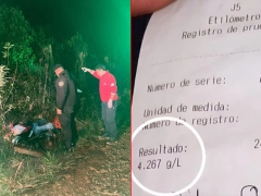 Ese resultado surgió cuando los policías lograron que recuperara la conciencia y soplara la boquilla del alcoholímetro. El joven, de 27 años, fue encontrado tirado al costado de un camino rural, en Apóstoles, Misiones.