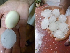 También cayó granizo de importante tamaño en una zona de Nogoyá.