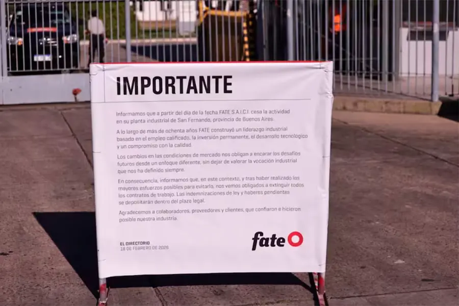 La empresa Fate anunció el cierre de su planta en San Fernando y el despido de unos 920 trabajadores. Empleados aseguraron que se enteraron al llegar a la fábrica y encontrar un cartel en la reja que informaba el cese de la actividad.