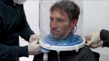 "Los sistemas no invasivos, como la mascarilla, desparraman el virus por todo el ambiente. Estas escafandras tienen un cuello de silicona, que cierra el cuello, una entrada de oxígeno y aire que se mezcla a criterio del profesional médico, y una salida de aire exhalado por el paciente que sale filtrado, y en esa salida hay una válvula de presión que hace que pueda aumentar la presión en el casco. El paciente recibe un oxígeno que le permite dilatar pulmones", destacó a Cadena 3.