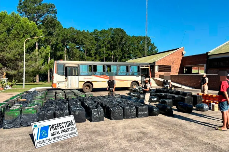 Prefectura secuestró mercadería valuada en 290 millones de pesos que era transportada en un colectivo en la zona de Salto Grande.