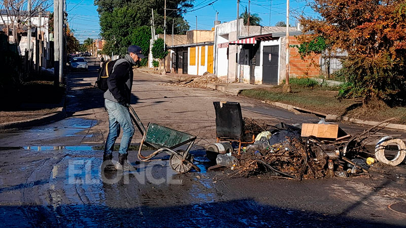 Algunas de estas tareas pudieron verse, por ejemplo, en zona de barrio Puerto, como también en zona del Barrio Vélez Sarsfield. En este sentido, se puede observar que en calle Catamarca y también en Carriego, donde el agua había arrastrado una cantidad importante de barro.