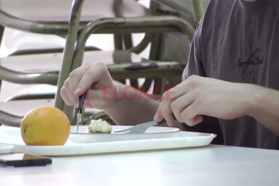 El menú diario incluye un plato principal y un postre o fruta. Este miércoles, por ejemplo, los estudiantes disfrutaron de fugazza y una naranja. Este jueves el postre será un flan.