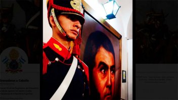 Se trata de la fotografía de <b>un Granadero emocionado durante el descubrimiento del retrato del Libertador en el Convento de San Carlos, San Lorenzo el pasado fin de semana.</b>
