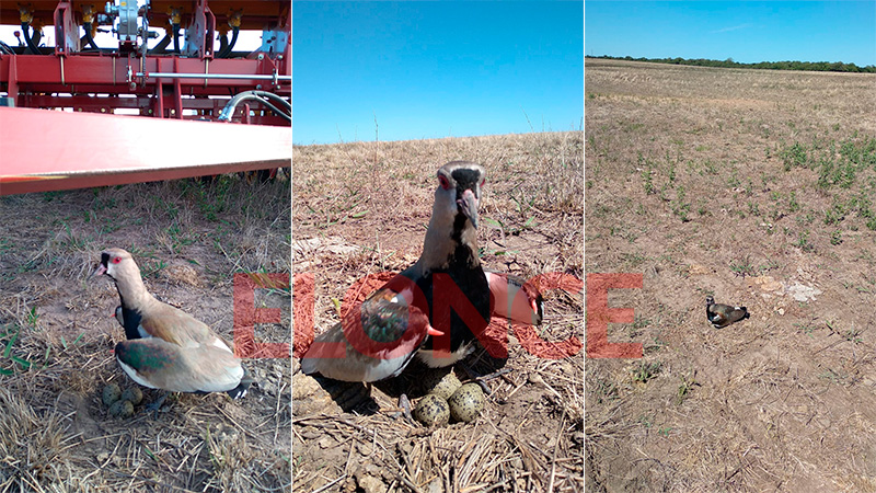 El contratista rememoró que, al descender de la sembradora, tuvo la intención de acercarse de al animal, pero en las imágenes a las que accedió Elonce se muestra cómo el ave defiende con ahínco sus huevos. “Abría las alas cubriendo su nido, porque los teros son fieles a su nido, y lo hicimos para protegerlo”, remarcó Broder.