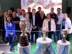Las Copas del Mundo, América y Finalissima se exhiben este martes en el polideportivo municipal “Cabo 1º Julio César Monzón” de Nogoyá; se trata de una actividad libre y gratuita organizada por la Municipalidad y Liga Departamental de Fútbol de Nogoyá, con el respaldo de la AFA.