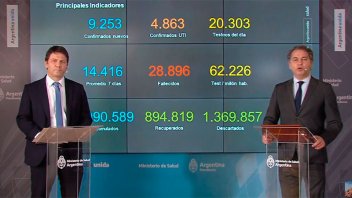 En el reporte oficial se indicó, además, que ayer en Argentina se constataron 9.253 casos positivos de Covid-19, con una tasa de incidencia de 2.403 cada 100.000 habitantes.