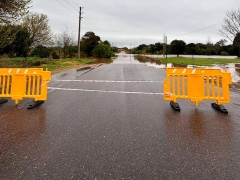 Cortan calle en San Benito. “Ante la gran cantidad de agua caída por las abundantes precipitaciones personal municipal colocó vallas prohibiendo la circulación de vehículos en calle Eslovenia sector de Arroyo Las Tunas y Cementerio Parroquial”, informaron desde la comuna de San Benito.