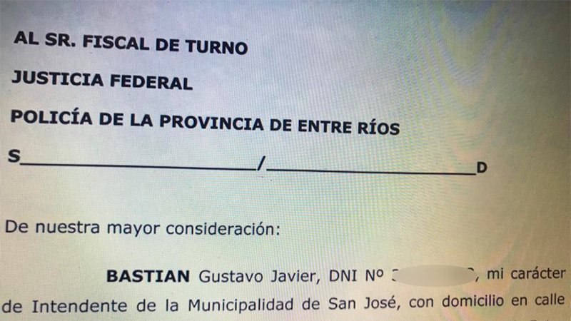 El intendente Bastian presentó la denuncia