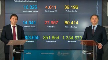 En el reporte oficial se indicó, además, que ayer se reportaron en Argentina 16.325 casos positivos de Covid-19, con una tasa de incidencia de 2.322 cada 100.000 habitantes, 1.053.650 el total de infectados hasta el momento y 4.611 las personas que se encuentran internadas en unidades de terapia intensiva.