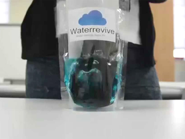 Explicó que, para hacer funcionar de nuevo al celular dañado basta introducirlo durante siete minutos en una bolsa de plástico de cierre hermético que acompaña a la solución química como parte del producto. Pasado ese tiempo el dispositivo se dejará secar durante veinticuatro horas fuera de la bolsa antes de volverlo a usar.