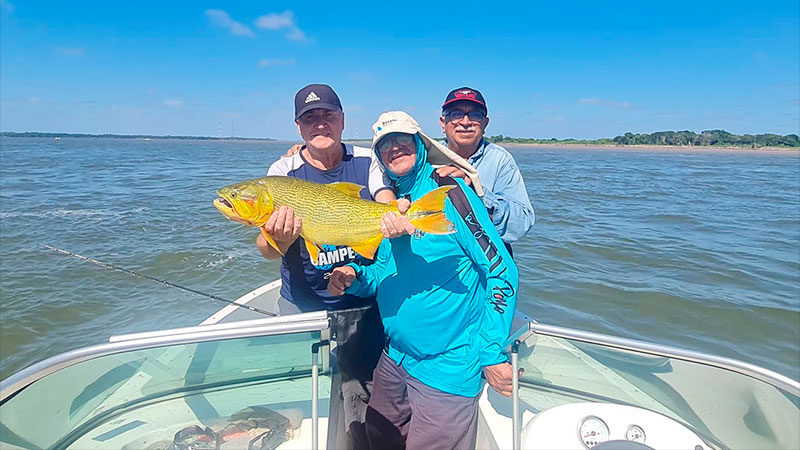Esa misma tarde, publicaron fotos de una excursión de pesca, que realizaron en la vecina provincia de Corrientes y posaron con una de sus capturas: un brilloso dorado de cinco kilos, que, por la noche, degustaron a la parrilla. Por supuesto que hubo foto de lo que calificaron como un manjar. Además, aclararon que los otros que pescaron, fueron devueltos al río.
